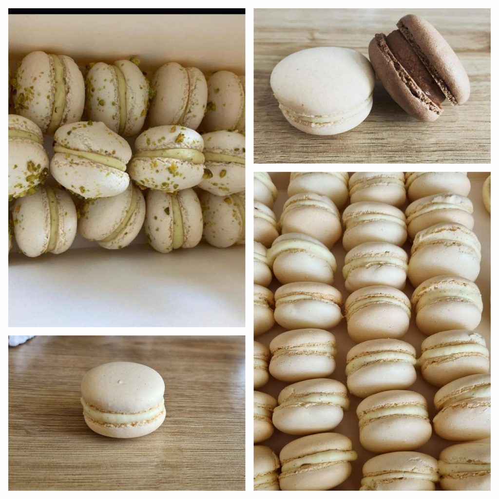 Macarons Vanille caramel Chocolat noir ou lait Pistaches et framboises Pâte à tartiner Prix à la douzaine : 15 euros
